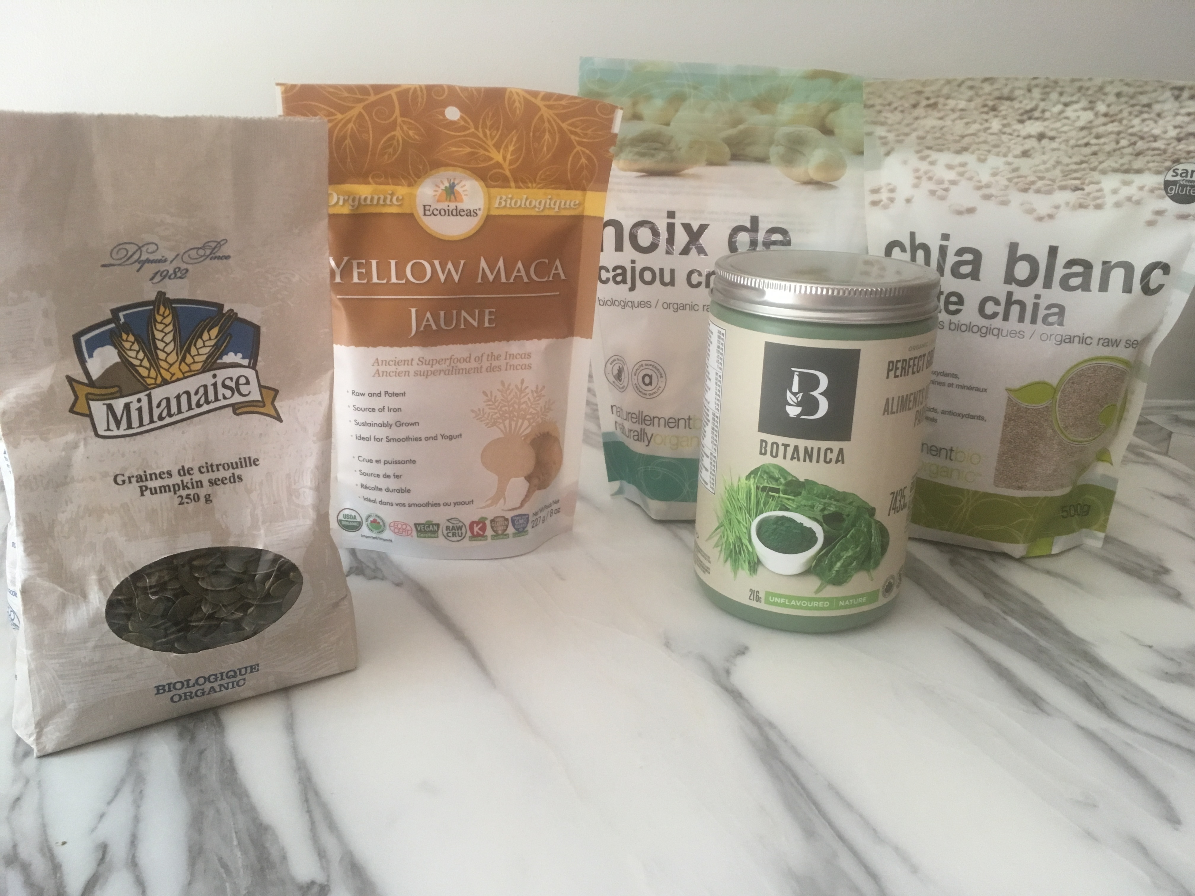 - une cuillère d’un mélange de spiruline, herbe de blé et chlorelle