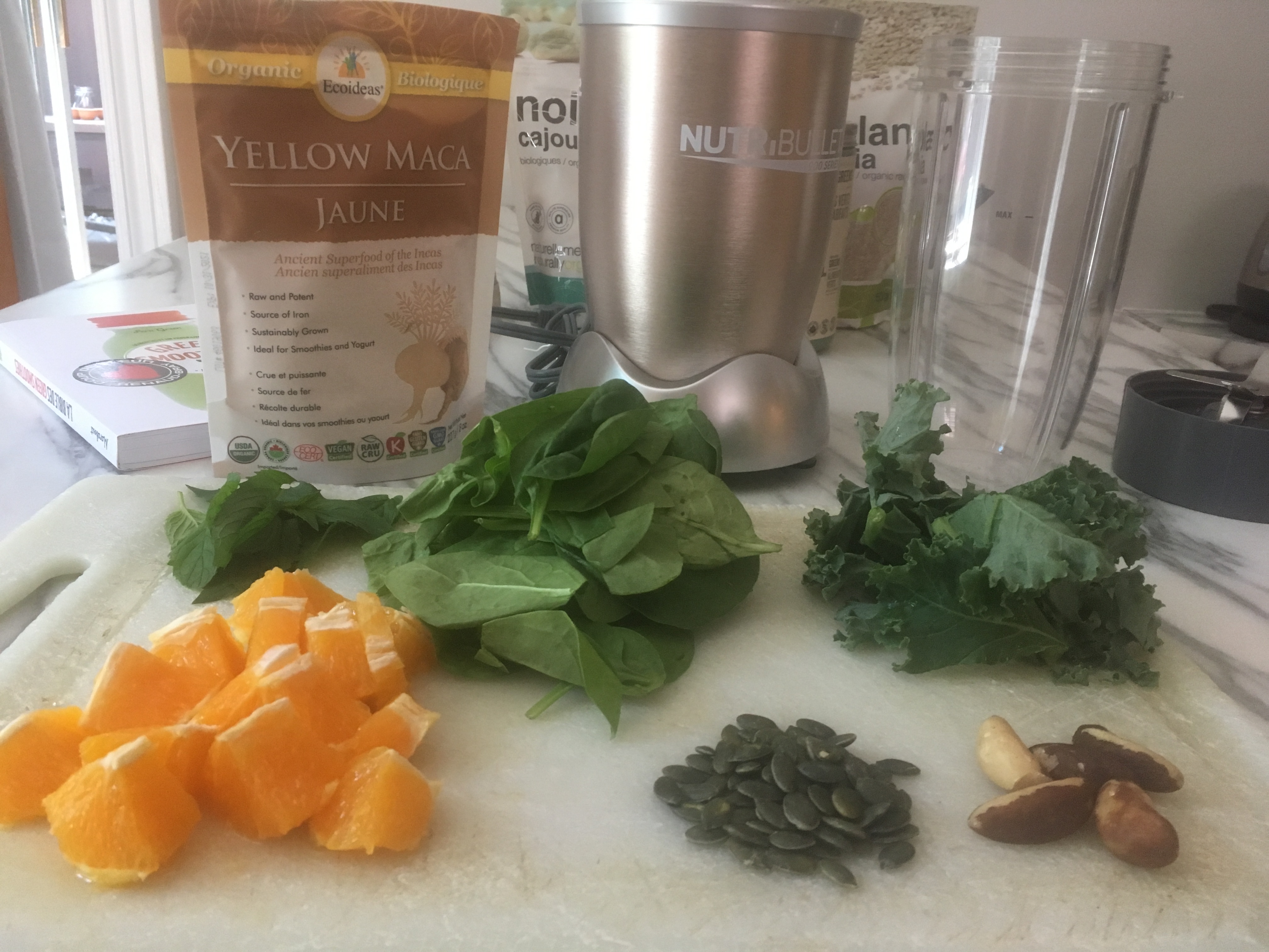Les jours de travail à la maison et durant le week-end, j’adore préparer cette boisson qui me permet de manger moins d’aliments transformés en utilisant de «vrais aliments» avec simplicité. Je mange ainsi mes portions de légumes sans difficulté et avec plaisir. Je choisi parmi ce que j’ai dans mon réfrigérateur et dans mes placards selon mon envie du moment. C’est tellement simple et rapide.