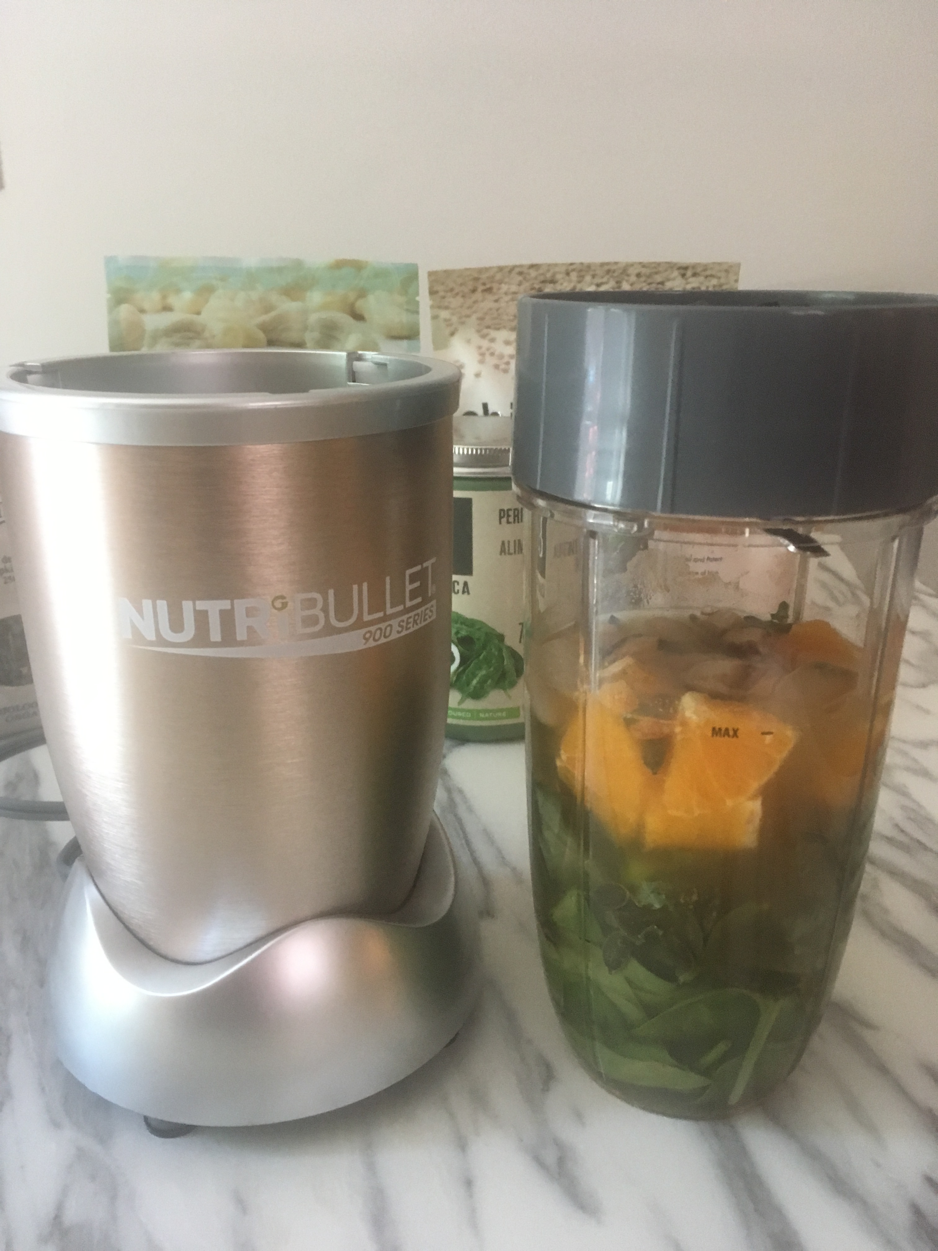 Mon accessoire beauté intérieure et extérieure: le nutribullet. Il est mon idéal pour mon smoothie vert, aux légumes crus, au lunch et mon smoothie jaune, aux fruits, le matin (celui-là sera le thème d’un prochain article).