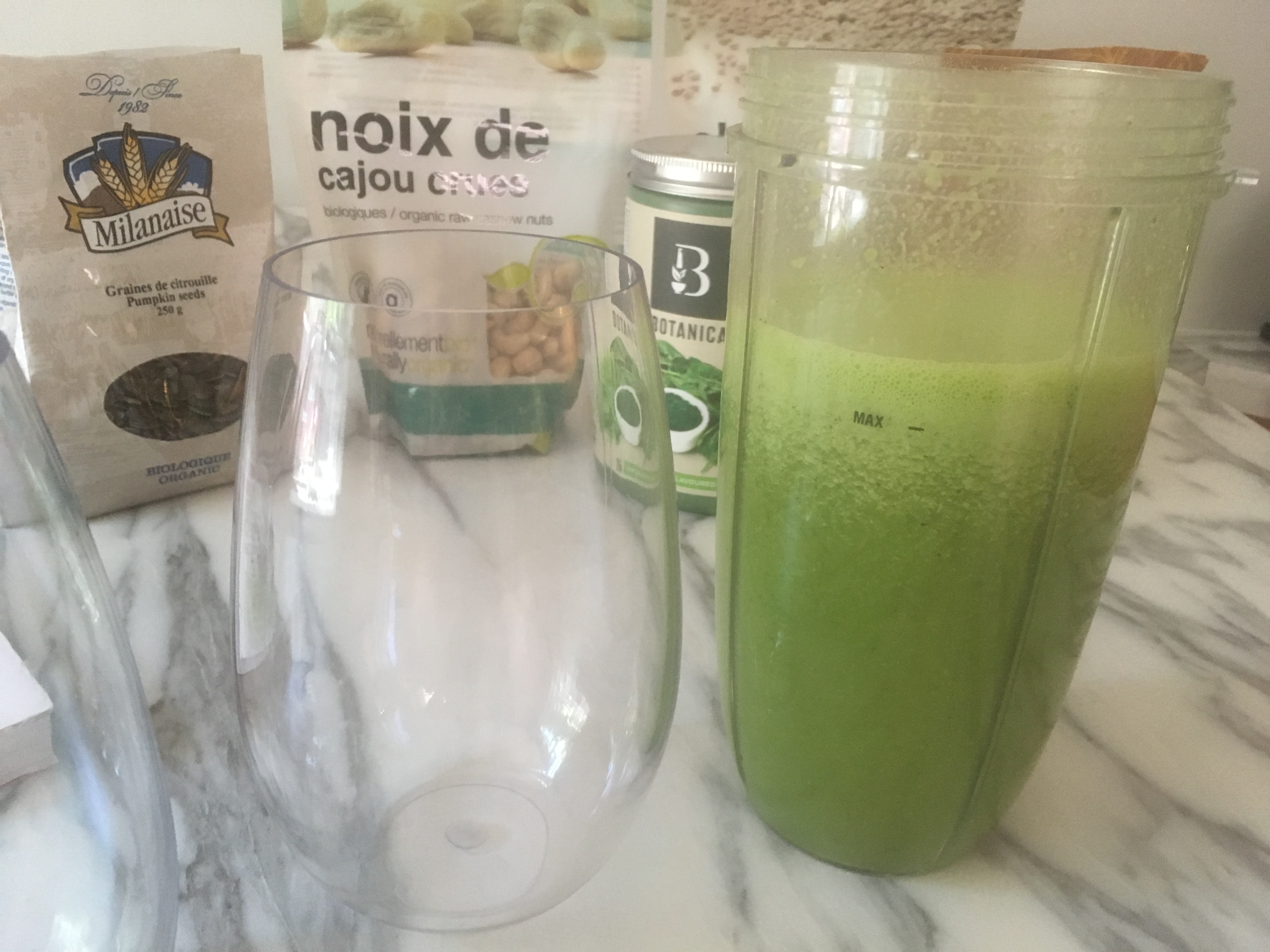 Pour augmenter les produits végétaux dans mon alimentation quotidienne, depuis plusieurs années, je bois un smoothie vert, au lunch quand je peux.