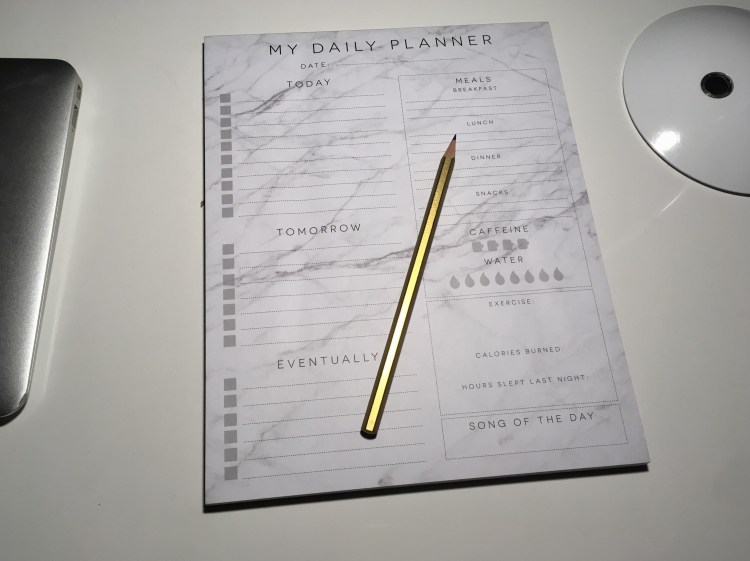 Cette fois ci, je mets en place une technique différente de planification. Je ne veux plus d’une longue liste à faire avec des priorités que je réserve à mon travail au bureau. Je voulais une façon de faire qui soit plus légère pour ma vie personnelle, rapide et efficace pour optimiser ce que j’appelle mon «mode action». Assez de réflexion, assez de discussions, assez de remettre toujours à plus tard ce qu’il m’importe de faire, aujourd’hui, j’agis et je me libère la tête! C’est mon «daily planner».