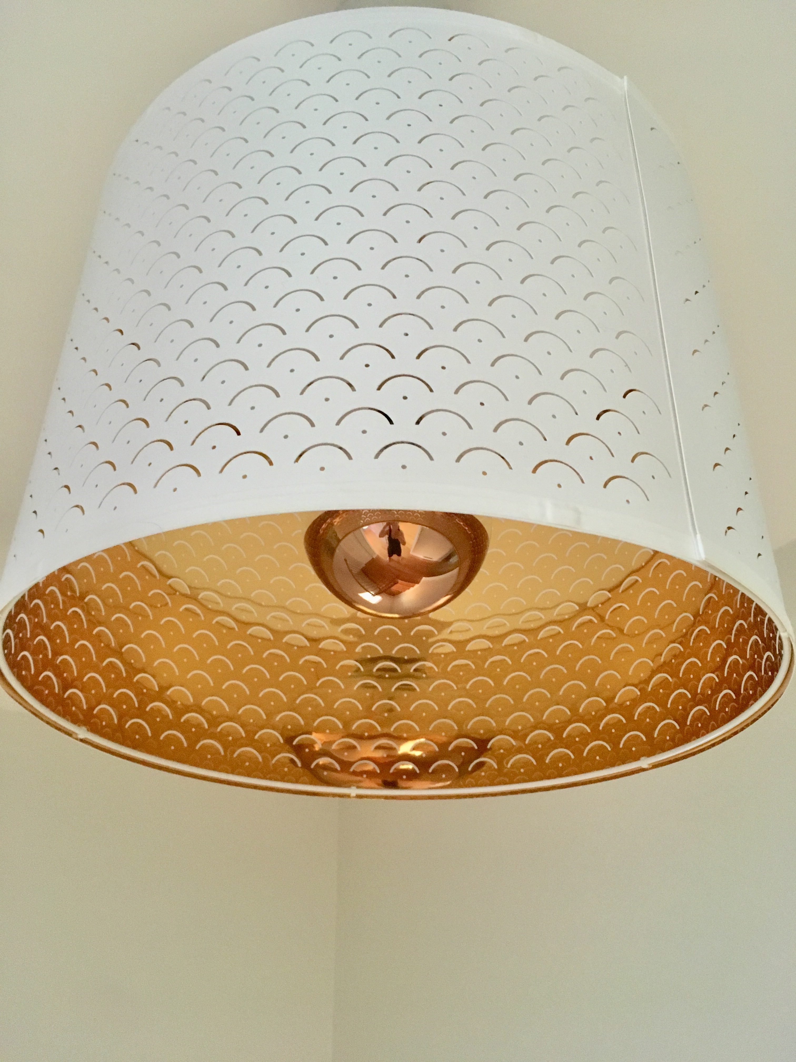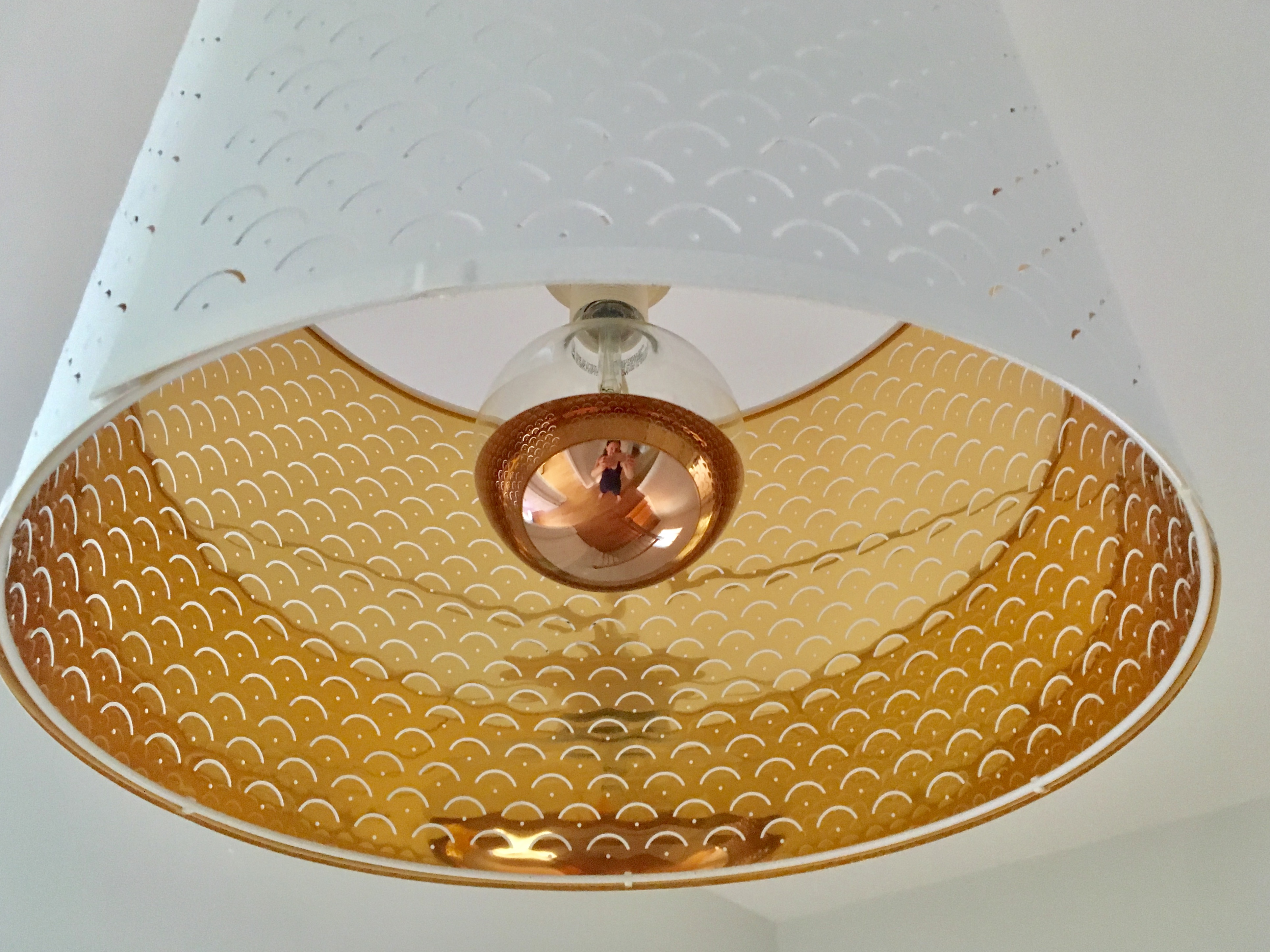 Mes luminaires sont de couleur dorée avec une forme arrondie qui crée de la douceur. Elle rappelle aussi la courbe de l’escalier qui représente la force de l’énergie. Au contraire, les lignes aiguës accélèrent cette énergie, trop rapide pour être positive. Chaque forme a son champ de force! Le stylisme d’intérieur, c’est savoir utiliser les courbes dans la création de l’ambiance d’une pièce.