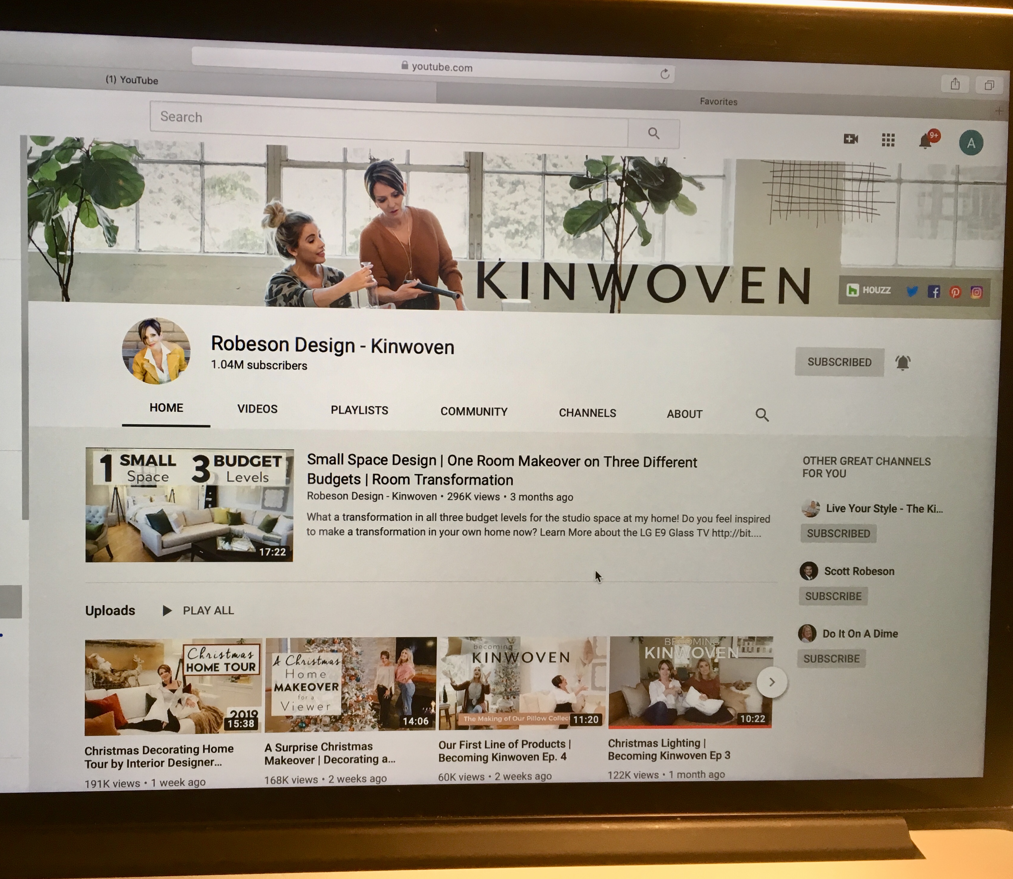 - Robeson Design – Kinwoven: cette chaine est dédiée à la décoration avec cette femme de 60 ans styliste d’intérieur en Californie. Elle nous amène dans ses transformations de décors, nous explique ses choix et c’est passionnant.
