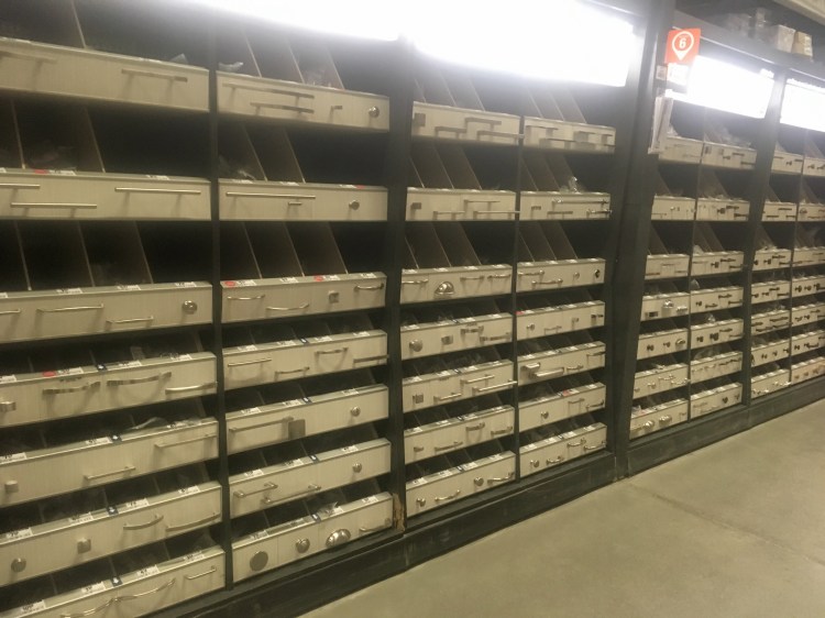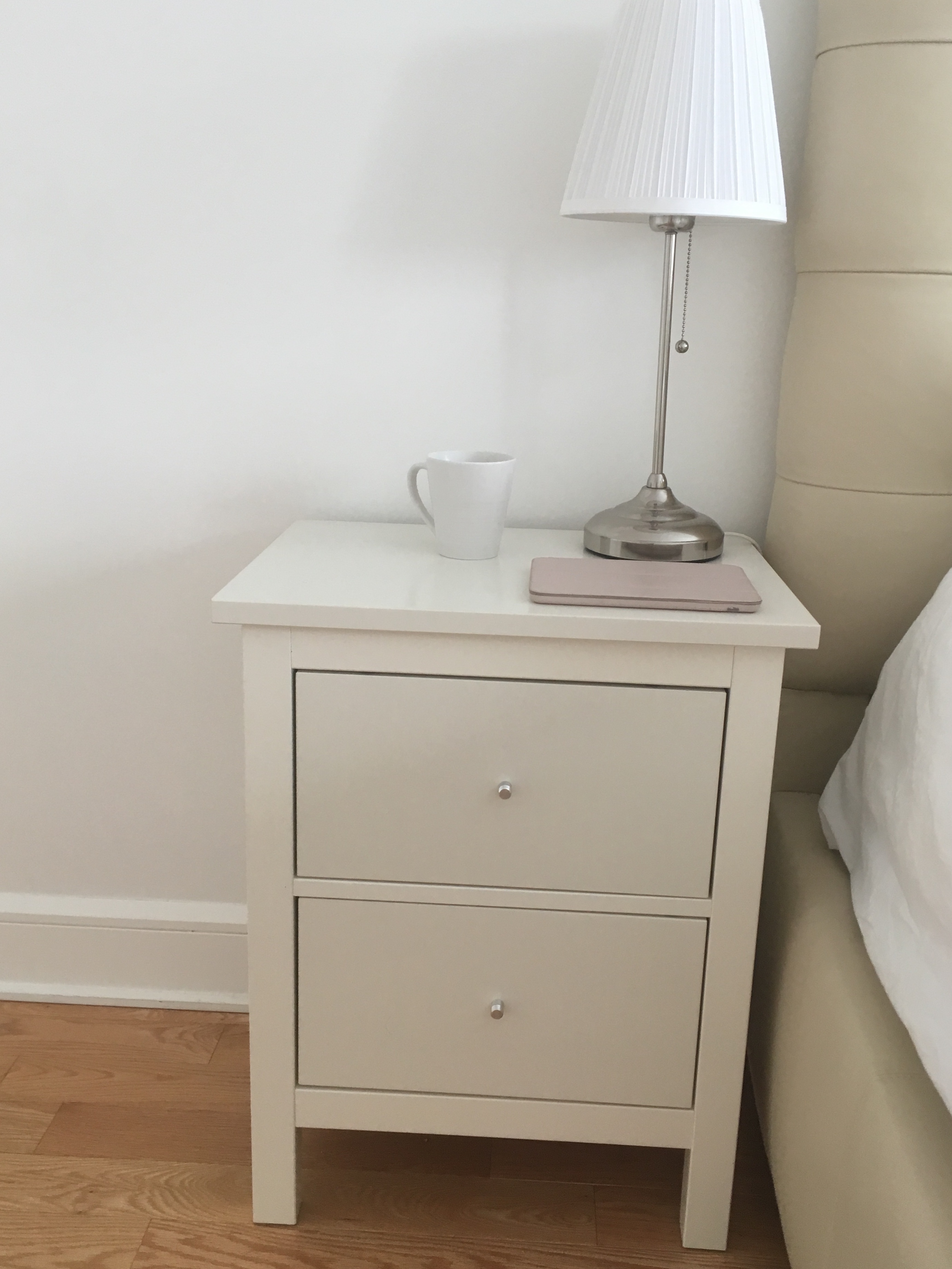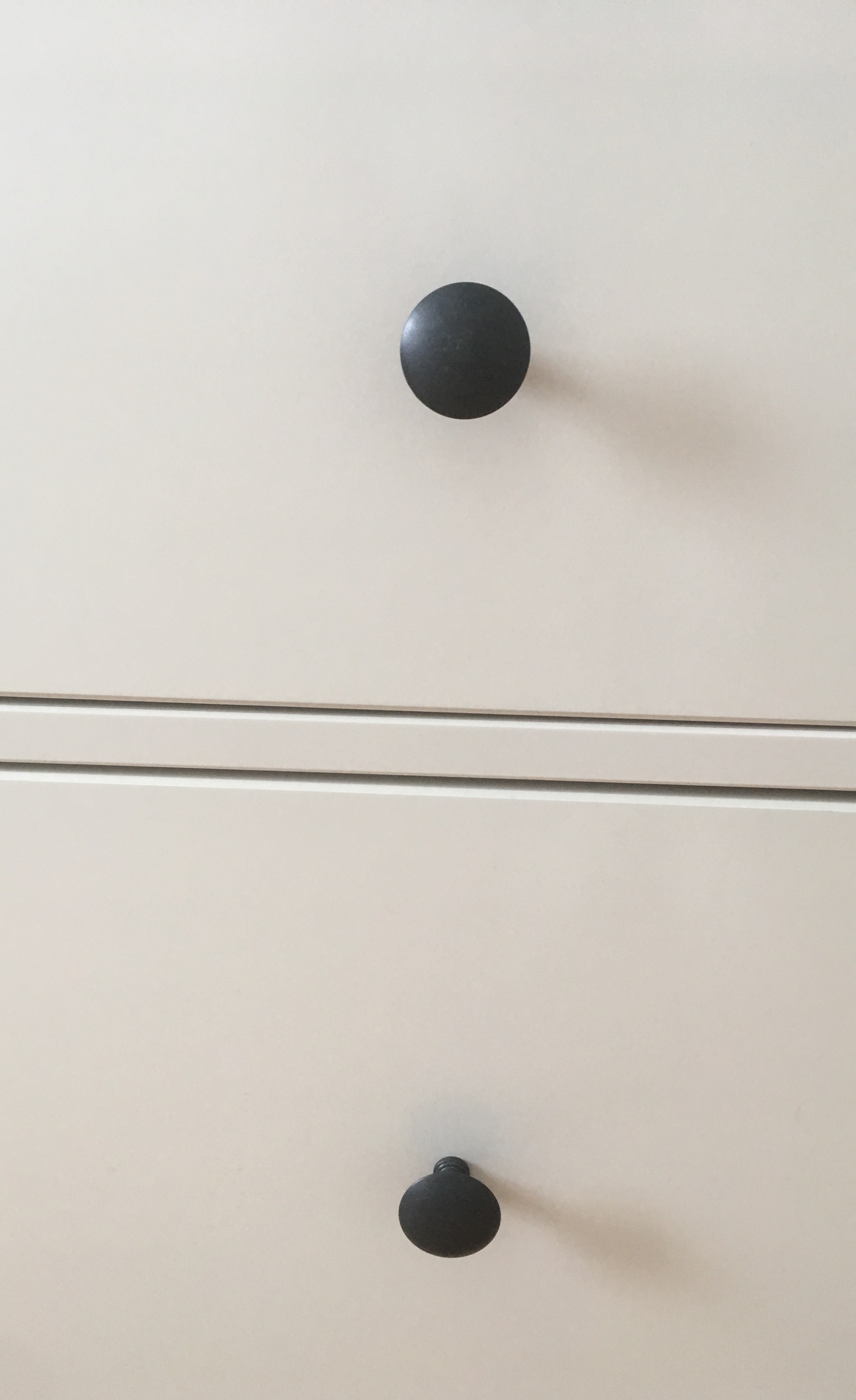 Une table de chevet Ikea avec des boutons noirs remplacés par des boutons gris métal. L’accord avec la lampe est plus harmonieux. Les boutons gris métal ont été récupérés du meuble Ikea pour lequel j’avais précédemment remplacer les boutons pour des boutons dorés, voir ci-dessous. (pour plus de détails, voir ici mon précédent blog sur Ikea)