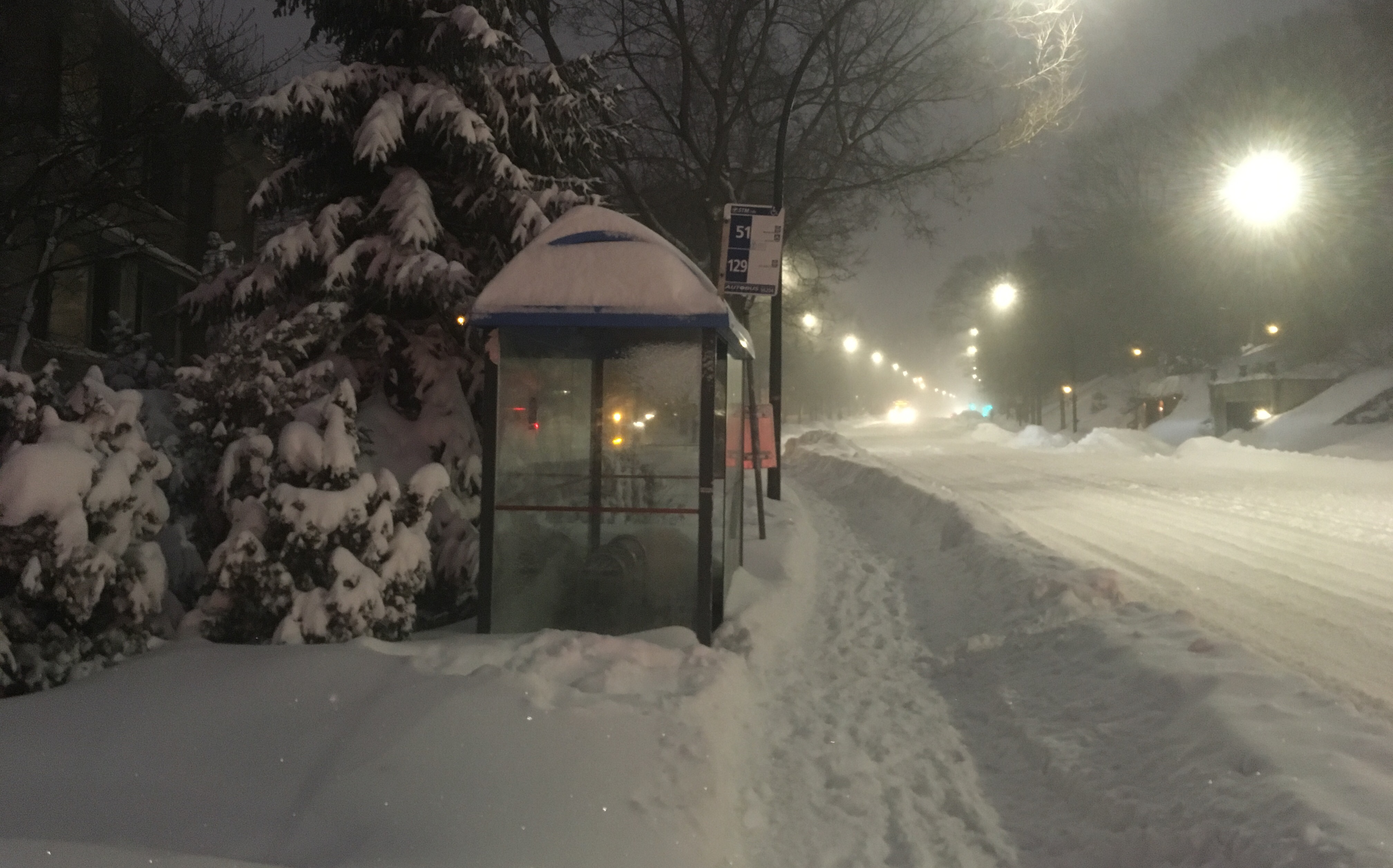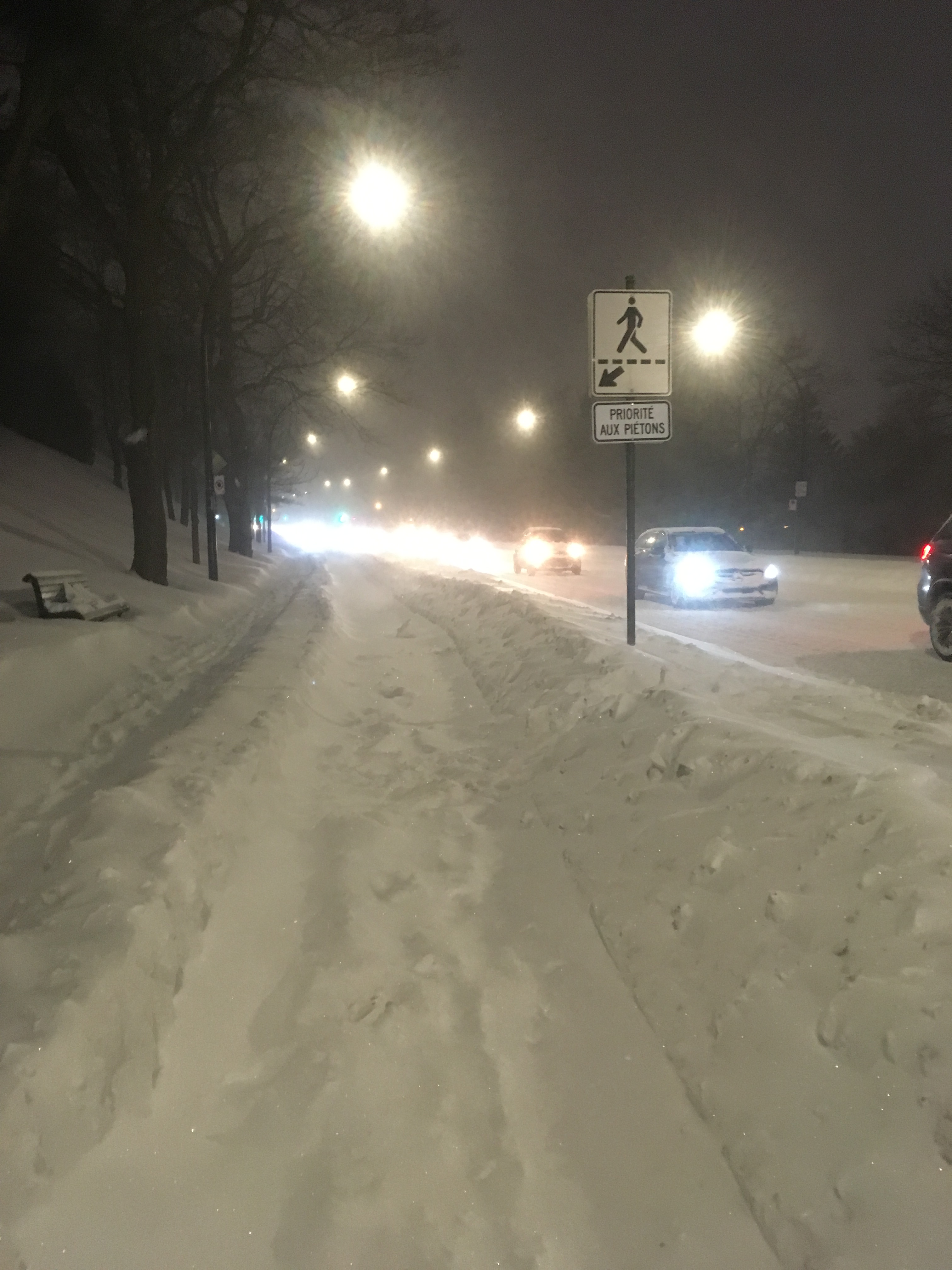 La ville de Montréal revêt alors un décor tout blanc, très lumineux même en soirée surtout avec la pleine lune de ce soir là!