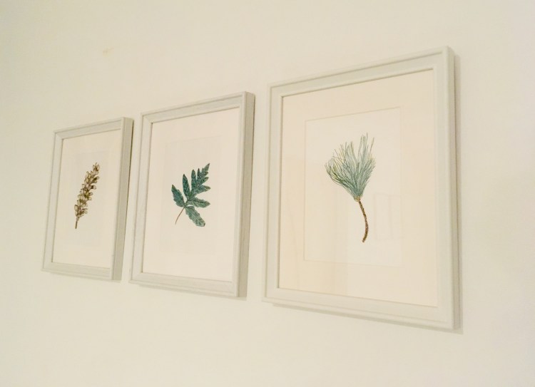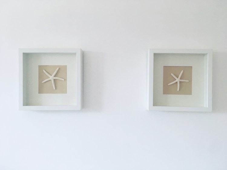 C’est la couleur qui permet de donner au cerveau un répit de la surcharge d’information de la journée. Couleur idéale pour les murs d’une chambre surtout si on joue avec les teintes de blanc pour réchauffer et créer des effets de couleurs par la palette des tons de blancs entre le plafond, les murs, les portes et les plinthes! J’aime marier cette couleur avec le beige, couleur sable comme dans mes tableaux d’étoiles de mer de notre chambre.