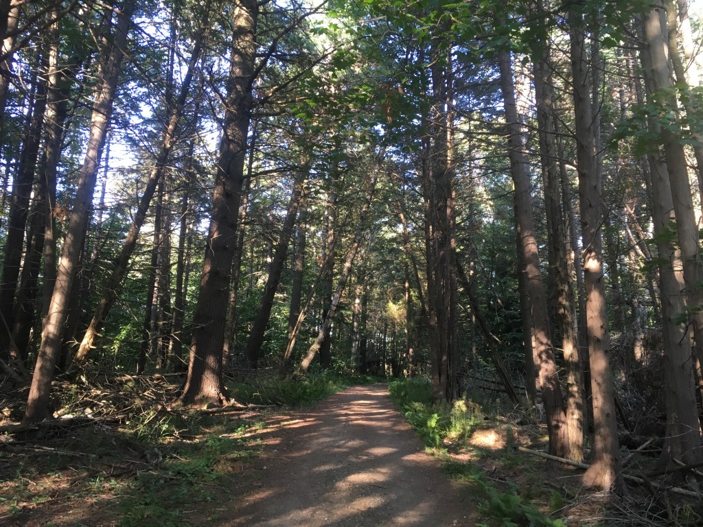 Ce chemin à travers la petite montagne commence par une forêt.J’aime les arbres matures et la lumière du soleil qui pénètre par petite touches lumineuses!