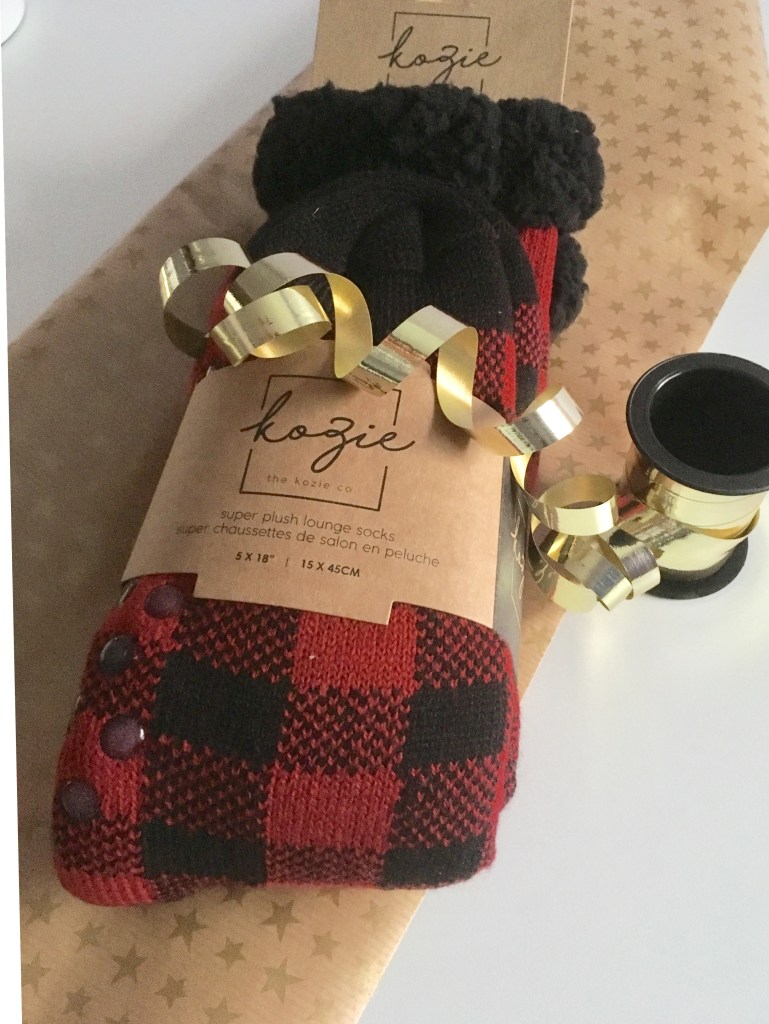Cette paire de chaussettes de salon en peluche est idéale pour lire ou regarder un film confortablement dans son salon. (disponible chez Zone Maison, lien ici)