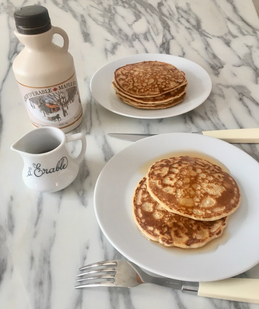 En mars au Québec, on dit que c’est le temps des sucres! Tradition oblige, les cabanes à sucre dans les campagnes servent des repas à base de saveur au sirop d’érable (sauf en pandémie). A la maison, cuisiner des pancakes avec du sirop d’érable québécois est un des plaisirs culinaires de la fin d’hiver au Québec!