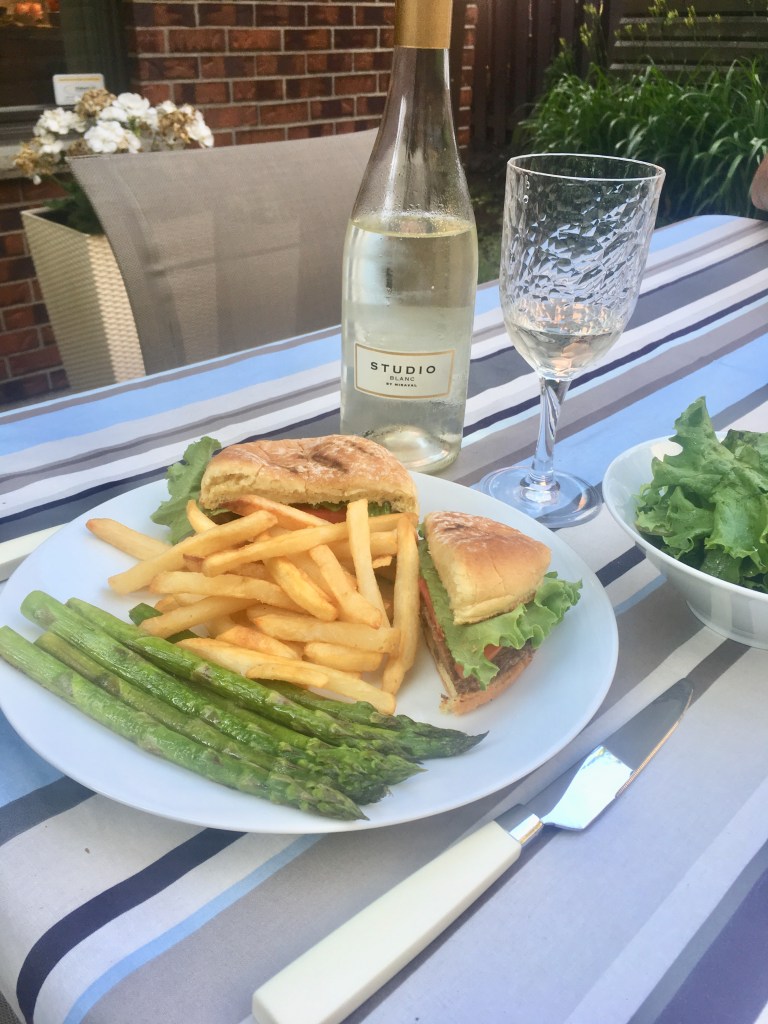 Savoir dresser une jolie nappe sur la table et manger dehors un repas cuit au barbecue accompagné d’une bonne salade verte fraiche ou des tomates mozzarella, basilic avec un verre de vin rosé «Miraval» ou de vin blanc «studio by Miraval» et le charme de l’été est alors à son maximum dans notre jardin de ville!