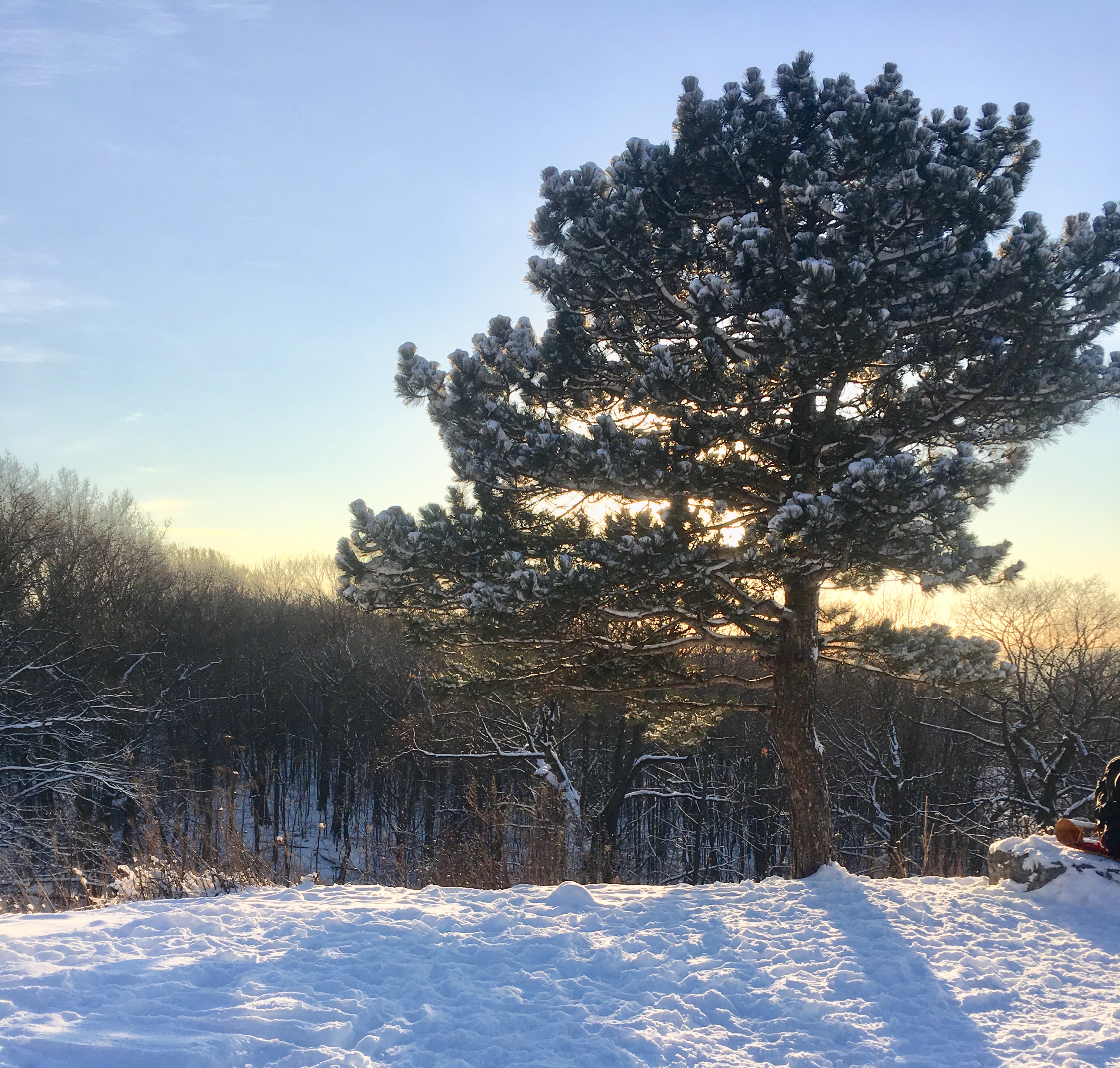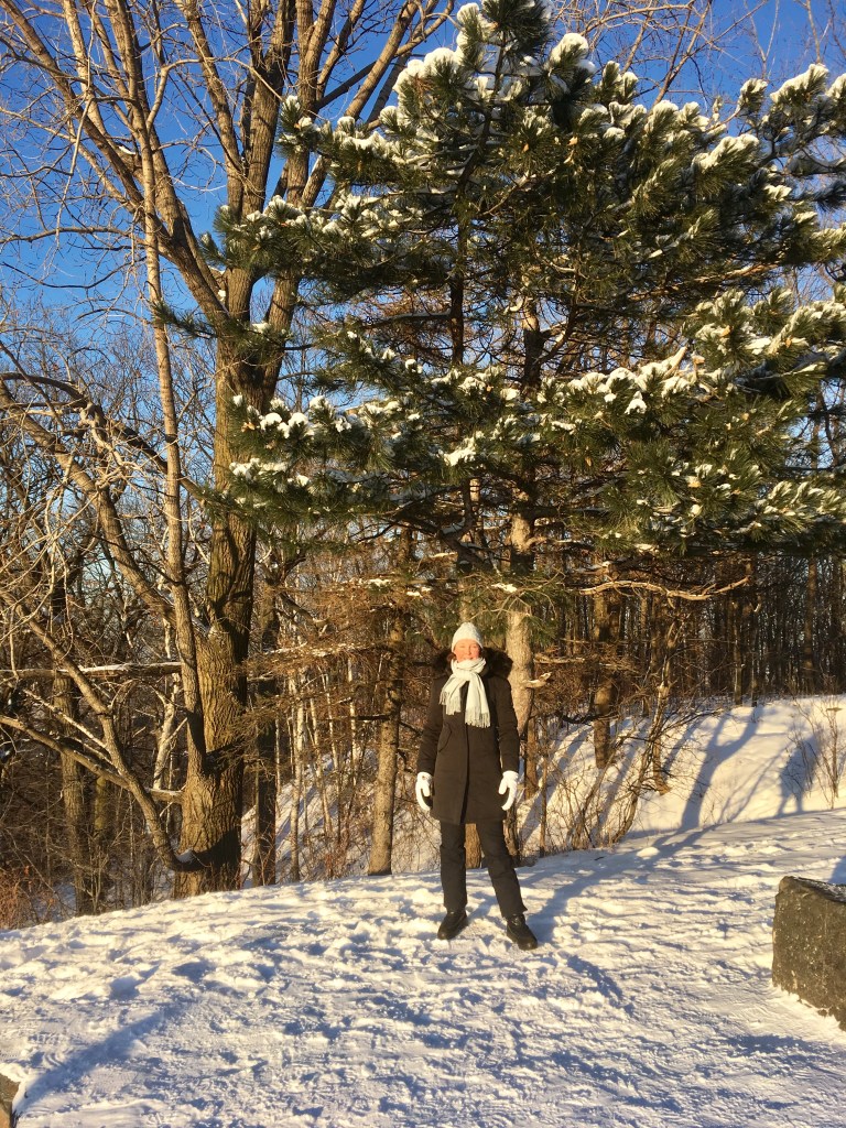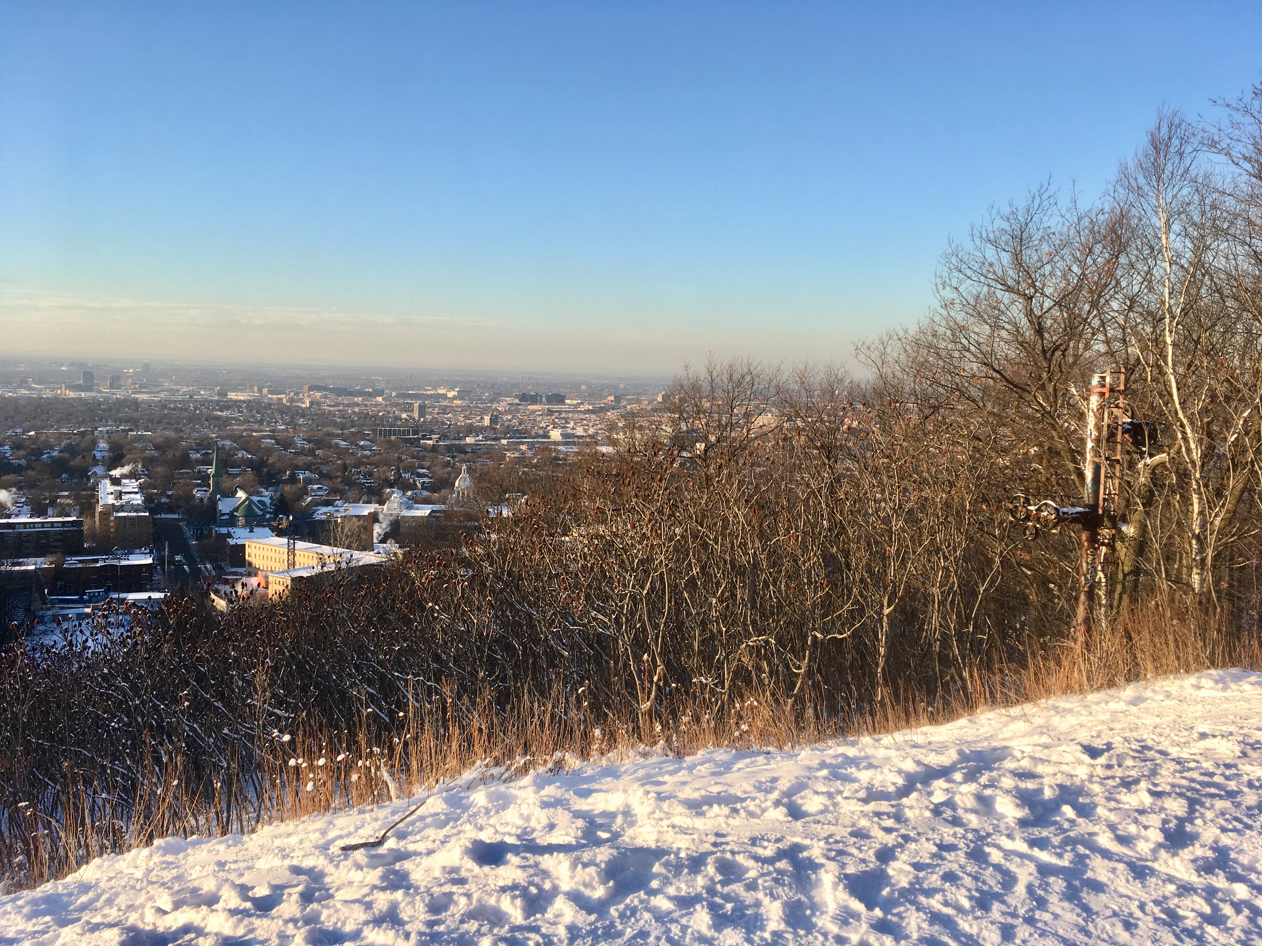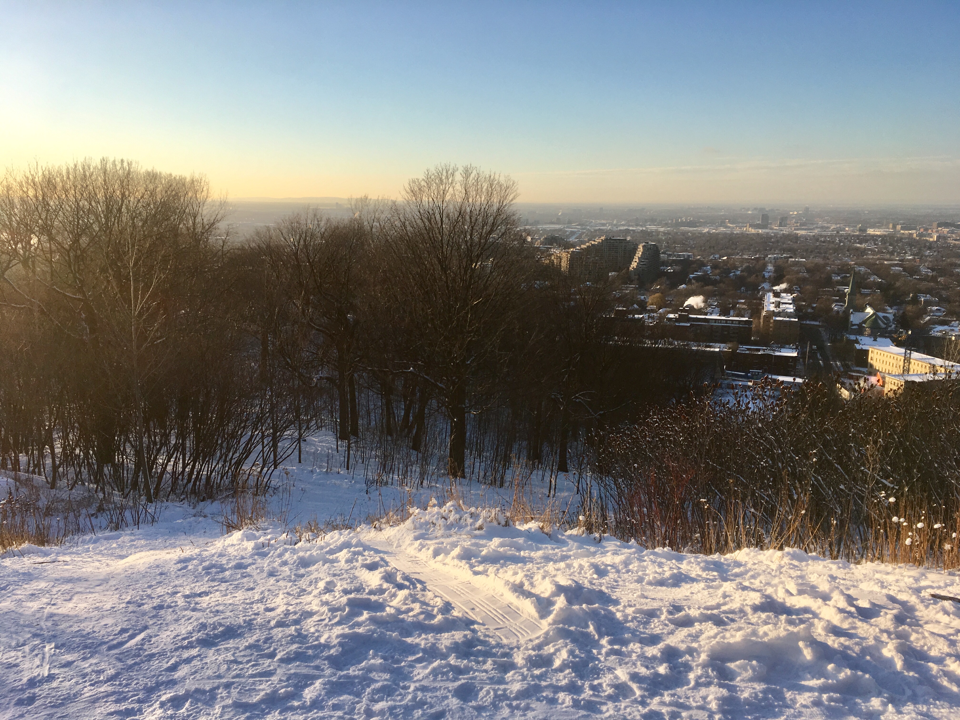 Attirée par le plein soleil et un ciel bleu intense d’une journée froide de janvier, le chemin de ma promenade quotidienne choisi sur le Mont Royal de Montréal est alors celui de la hauteur de l’endroit.