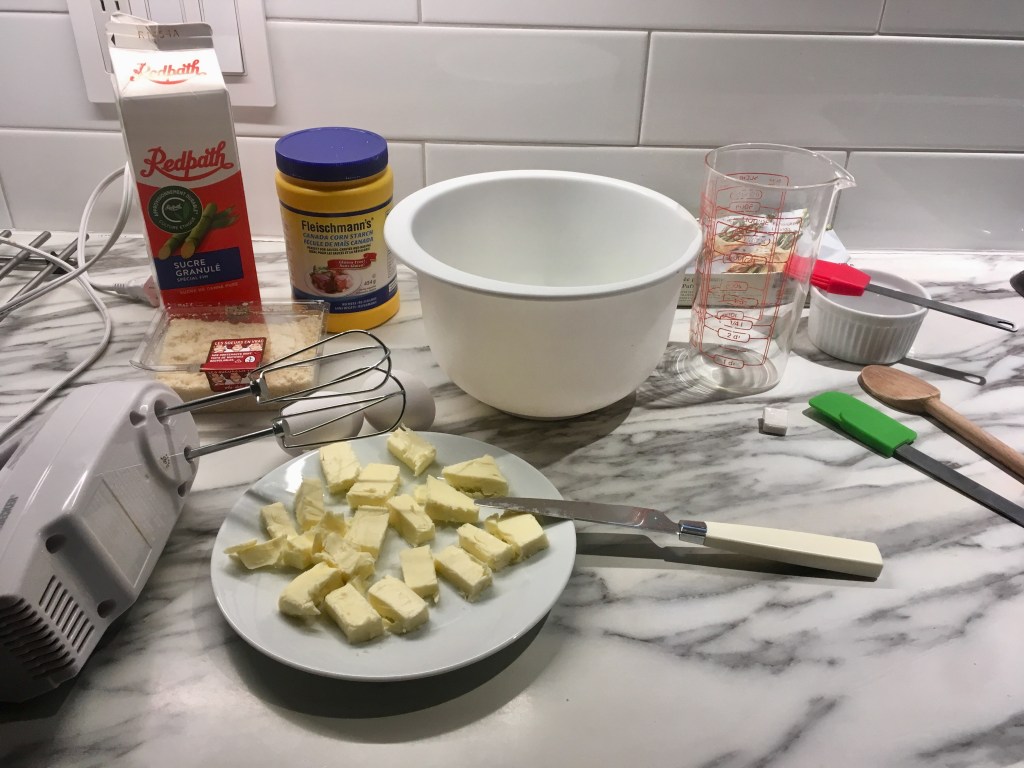 Pour réaliser ma galette des rois, j’ai réuni sur mon plan de travail: