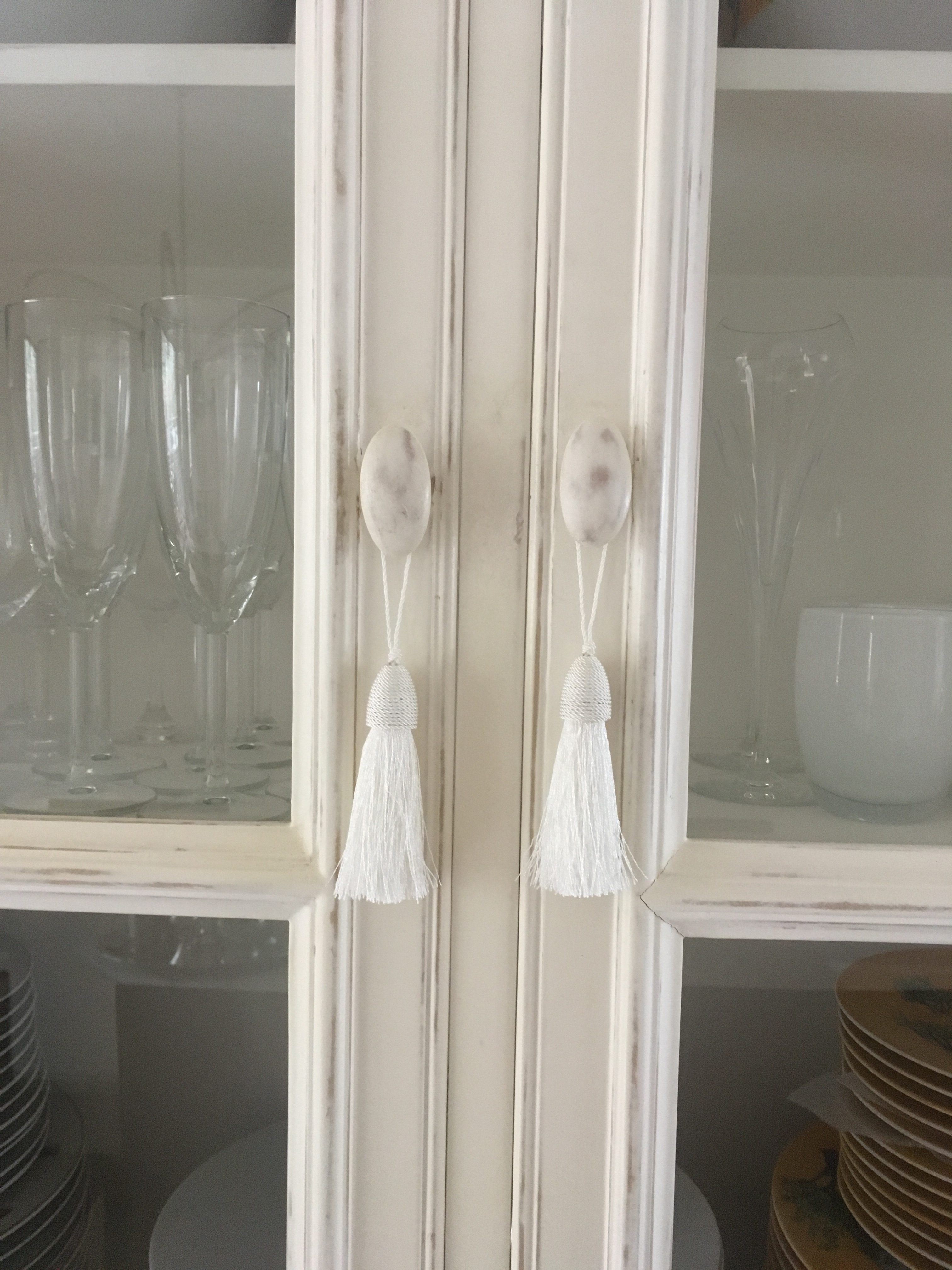 Voici l’astuce design: un petit gland accroché au tiroir qui reprend une couleur de la pièce. Normalement, cet accessoire est réservé aux coussins ou aux rideaux.