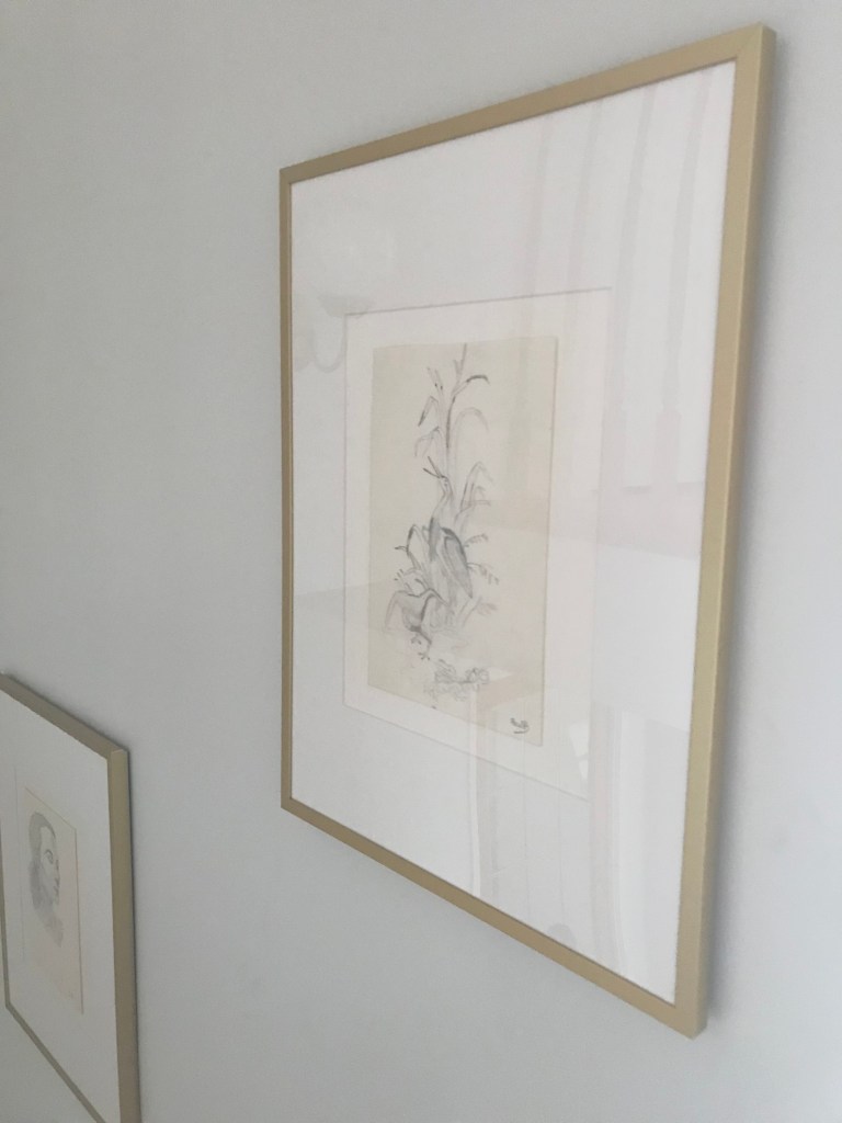 L’encadrement de mes dessins dans des cadres dorés pour embellir l’escalier: