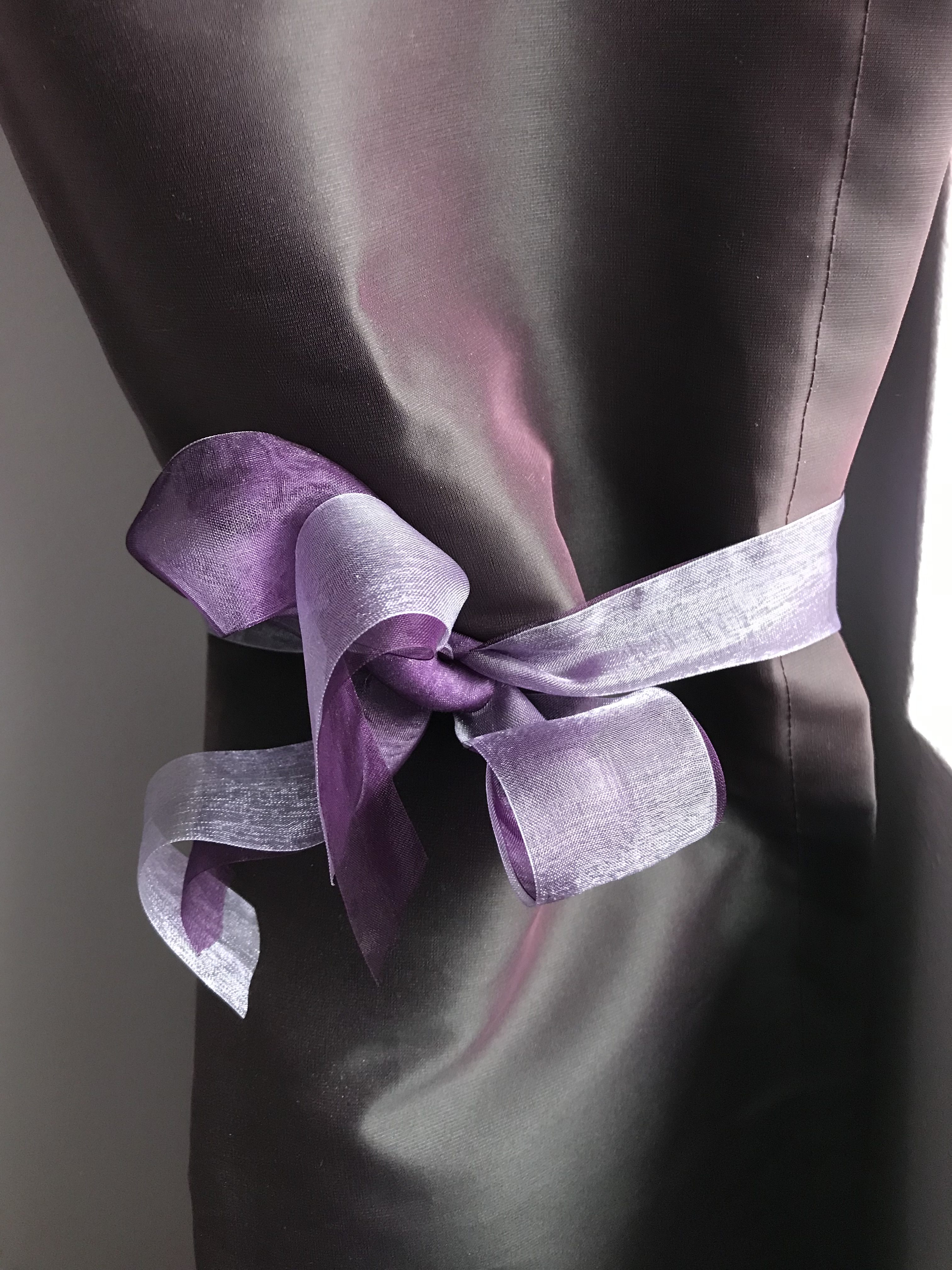 Pour attacher mes rideaux, j’ai choisi des rubans de couleurs mauves et violets dans une matière délicate qui apporte une touche sublime avec le mariage de ces deux couleurs!