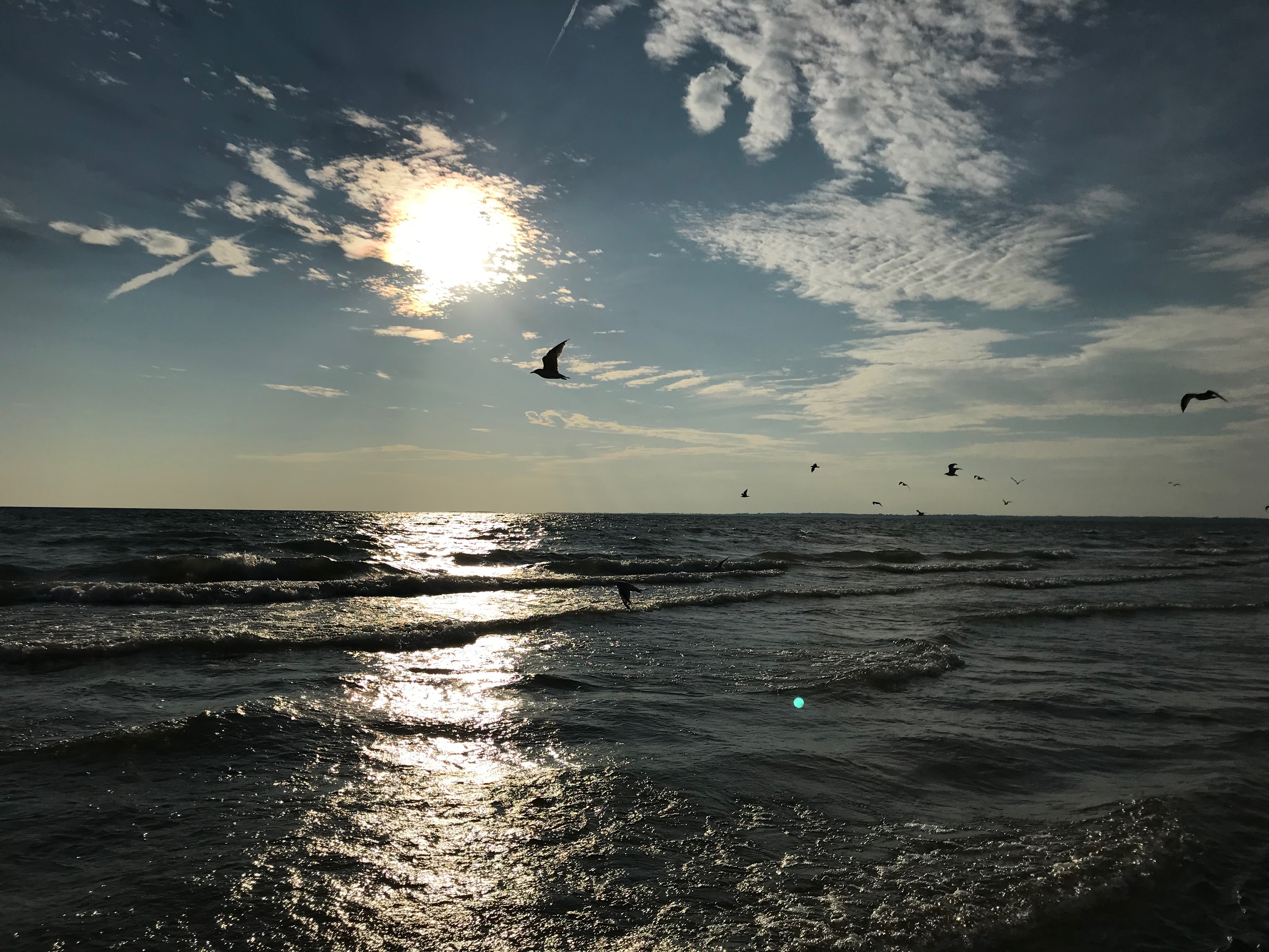 - les oiseaux en toute liberté dans le ciel au dessus des vagues…