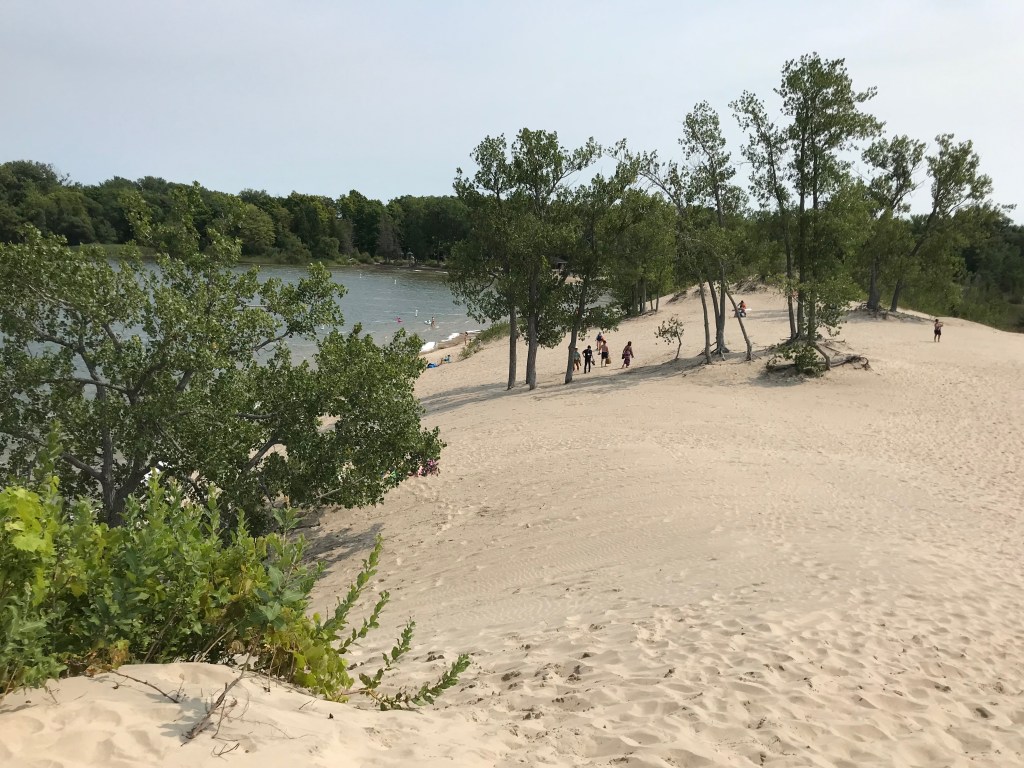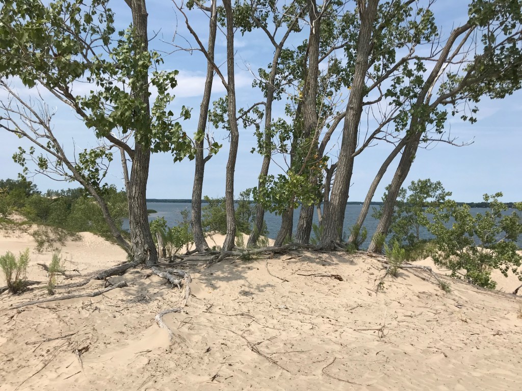 La vue est magnifique de la hauteur de cette dune. S’y promener est un bonheur entre lac et végétation; elle est si longue, que je n’en ai pas vu la fin!