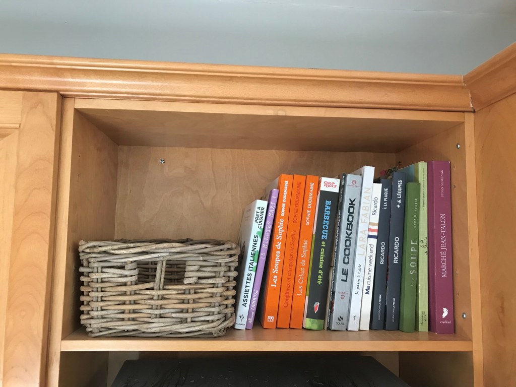 Et, je range dans les placards tout ce dont j’ai besoin pour cuisiner mais qui n’a aucun intérêt à être à la vue quand je ne cuisine pas.