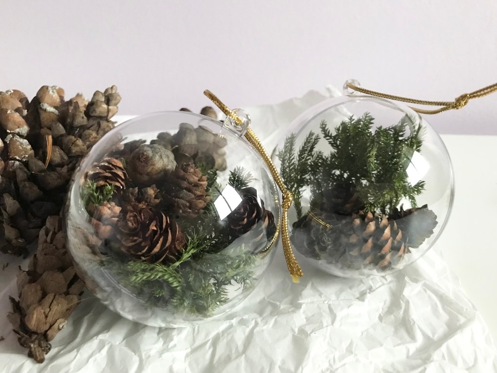C’était le moment de ramasser les cocottes de toutes les tailles et les pousses de sapin pour confectionner mes boules de Noël, sans abimer la forêt.