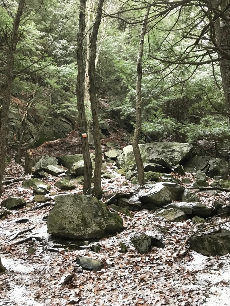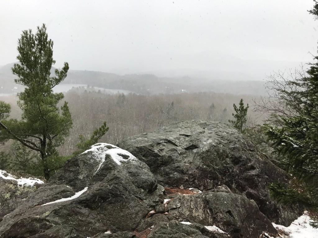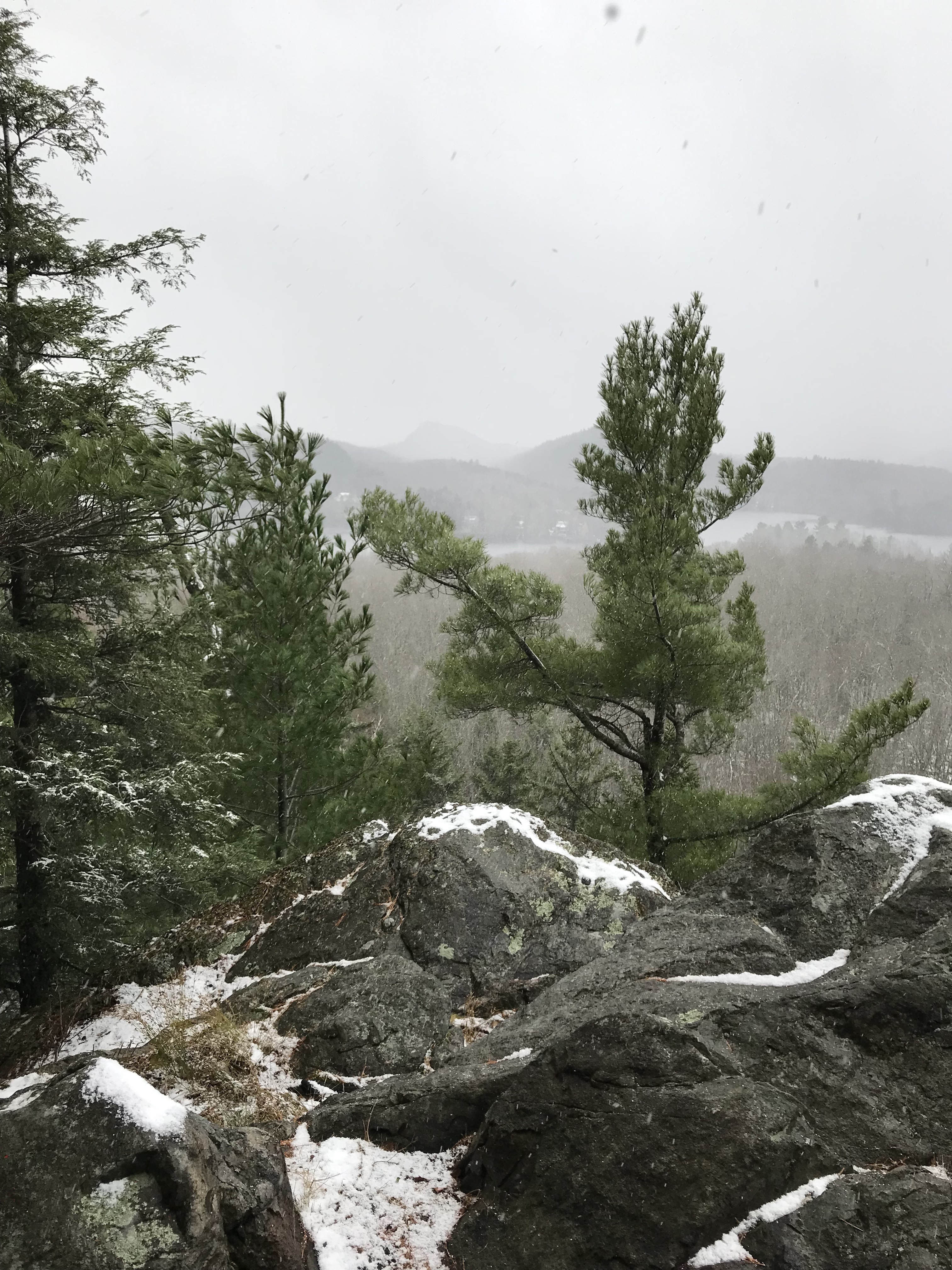 Arrivés au top du mont, la neige qui tombait avait recouvert le sol d’un manteau blanc.