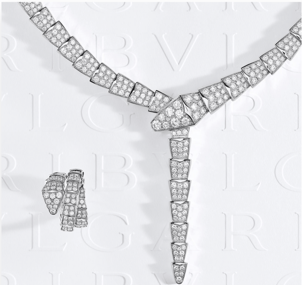 Puis, le premier arrêt de la visite particulière est un petit salon avec 2 collections Bvlgary exposées, la collection «Serpenti» et la collection «Diva».